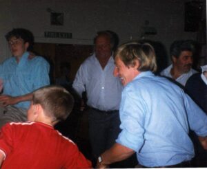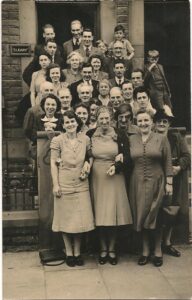 Mrs. Franklin dancing with Don Howel, 1958. Back row L to R: ?, ?, Doris Amey, ?, Charles Amey, Eric Taylor. Second row: Hazel Goodman, Maureen Holt, Sheila Tomlin, David Cox, Jean Clayton, Sandra Lewis, Keith Merryfield, Julie Pepper, Basil Tisor, John Summers. Front row L to R: Ray Davis, Ceilia Adshead, Sue Salmons, Sylvia Alcock?, Christine Cox, Brian McKenna, Joyce Knight, David Chapman, Rosemary Summers, Sheila Chalmers.