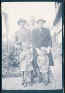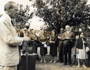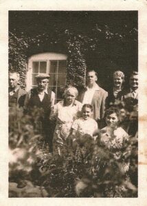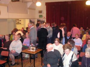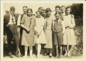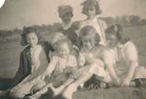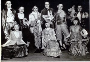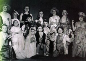 Dancing organised by Mrs. Franklin. Back row L to R: ?, Jean Archer, a visiting singer, Norma Wilkinson, Beryl Sly (with hat), Elizabeth Hunt, Barbara Summers. Middle row L to R: Winifred Archer, Marie Allcott, George Merryfield (boy with book), Keith Merryfield. Front row L to R: Rosemary Summers, Barbara Hunt, Rosemary Spencer.