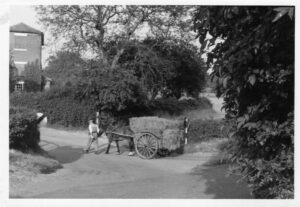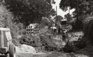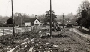 Road alterations being carried out on Ullenhall Lane, 1960s. Rose Cottage Farm on left.
