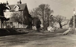 A postcard showing the Winged Spur. Opposite is the cottage, demolished when the Garage was built.