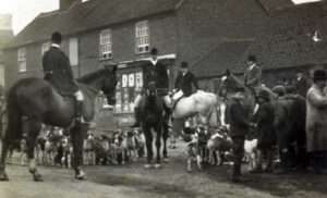 A postcard showing a meeting of the North Warwickshire Hounds.