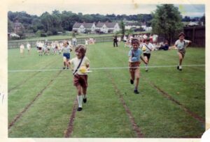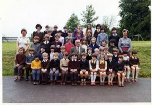 Ullenhall School, 1975. Back row: Paul Hind, Anthony Haimes, Cerian Henshaw, Jackie Chapman, Mark Dyson, Mair Hughes, Anoushka, Nigel McKentee, Sam Hughes, Mark Everiss, Joanna Evans. Fifth row: Tim Smalley, Andrew Tisor, Howard Abbey, Loretta Fletcher, Mandy Hemmings, Susie Peet, Joe Tomlin, Nicholas W.J, Helen Sillitoe, Rachel Marshall, Mrs Hays. Fourth row: Mrs Turner, Joanne Spencer, Carolyn Abbey, David Mole, Christine Holt, Janet Fowler, Thea Hughes, Louise Cunningham, Elizabeth Harris, Janet Evans, Lucy Ann Evans, Debbie Smalley, Mr Barlow. Third row: Mrs Ashby, Nola Thursfield, Joanna Beven, Tanzey Earle, Jodie Sumner, David Plummer, Lani Ruben, Sarah Barnard, Rachel Tomlin, Kirstie Cunningham, Mrs Price. Second row: Gillian W.J., Maureen Knight, Bizzy Earle, Meera Khosla, Jenny Peet, Ruth Marshall, David Henshaw, Nigel Rogers, Jamie Brain. Front row: Alex Hartley, Ian Ross, Peter Taylor, Stuart Tisor, Mark Stevens, Dorothy Turney, Tracey Hodgetts, Jason Spencer, Darron Mitchell.